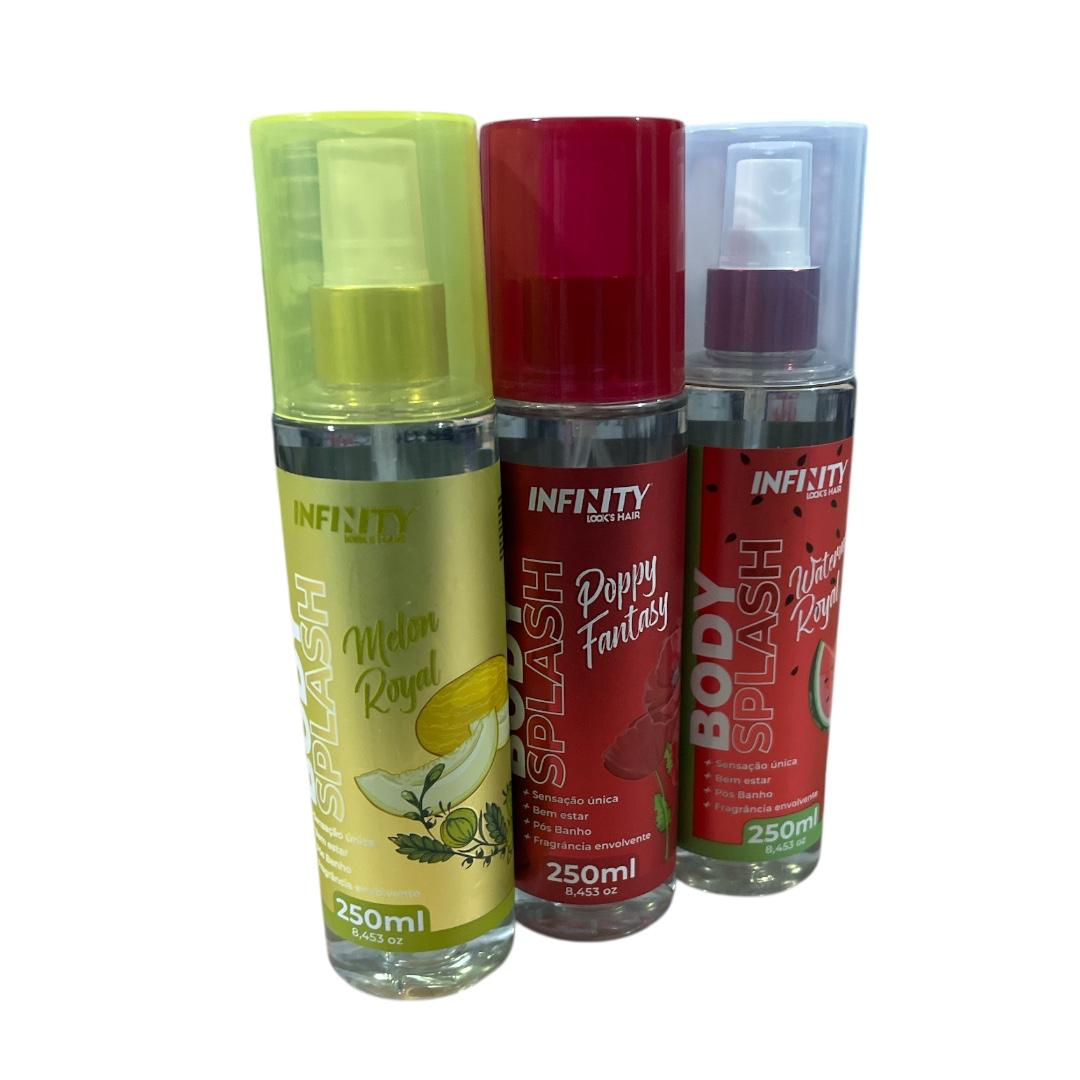 Descubra a nova linha de body splash INFINITY LOKS HAIR250ML, disponível nas fragrâncias irresistíveis de MELANCIA,MELÃO E FLORAL. Cada uma delas foi cuidadosamente formulada para proporcionar uma experiência sensorial única, mantendo sua pele perfumada e hidratada ao longo do dia. Escolha a fragrância que mais combina com você e sinta-se revigorada a qualquer momento.