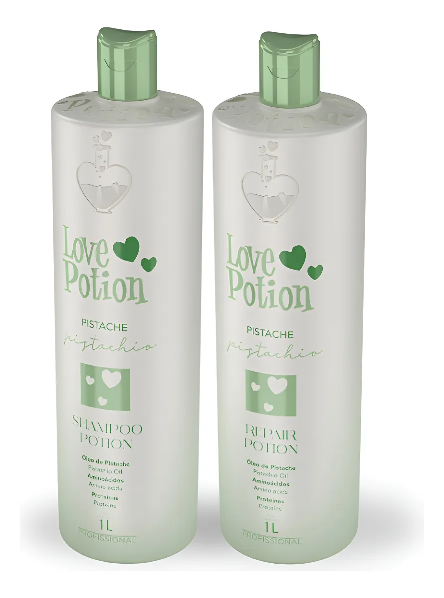 A linha de Pistache da Love Potion é enriquecida com proteínas, aminoácidos e óleo de pistache, esse tratamento penetra profundamente na fibra capilar, promove restauração, força, maciez e brilho.