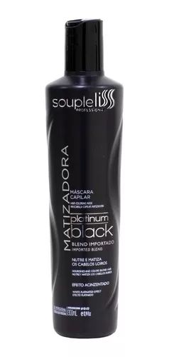 A Máscara Matizadora Platinum Black SoupleLiss foi desenvolvida especiamente para matizar cabelos pré descoloridos neutralizando tons indesejados deixando um efeito platinado. Também pode ser usado como desamarelador de loiros desbotados, grisalhos e brancos.