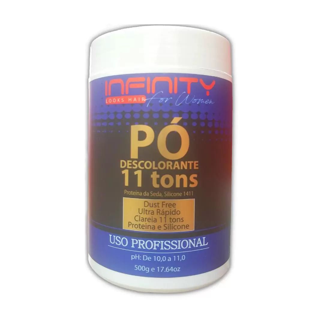 Antes de usar, faça os testes de toque e de mechas. Utilize luvas. Em um recipiente não metálico, misture o Pó Descolorante Infinity Looks Hair ao oxidante (água oxigenada) conforme o resultado desejado - 20, 30 ou 40 volumes - na proporção de 1 para 1, até 1 para 2. Misture com auxílio de uma espátula não metálica ou pincel, até obter uma consistência homogênea. Aplicar sobre os cabelos secos e não lavados, iniciando na nuca ou nas partes mais escuras. Após o tempo de ação, lave com água em abundância até retirar totalmente o produto. Proceda a seguir, lavagem com Shampoo e Condicionador. Tempo de Ação: Deixe agir conforme o grau de clareamento desejado, a porosidade dos fios e a sua estrutura.