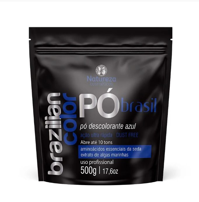 O Pó Descolorante Azul Pó Brasil Brazilian Color Natureza é um Pó Descolorante elaborado exclusivamente para o processo de clareamento capilar como descoloração de mechas e luzes, ideal principalmente para a descoloração dos cabelos loiros e platinados. Possui em sua fórmula, Extrato de Algas e Proteína da Seda que proporcionam um resultado uniforme, proteção, hidratação, sedosidade e brilho. O pó Azul brazilian Color é Ultra Rápido e com o Exclusivo Plex System, que protege o cabelo durante a descoloração.