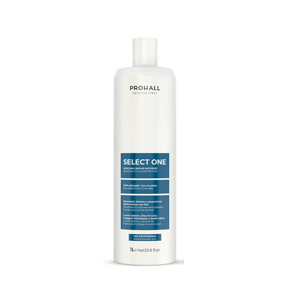 A Select One 1000ml promove o controle do frizz do volume excessivo. O produto entrega fios sem frizz e, além disso, o controle dos fios mais rebeldes. A sedosidade, maciez, brilho e movimento são resultados de uma tecnologia de ponta que promete uma hidratação profunda e um tratamento completo à fibra capilar, promovendo fios disciplinados.